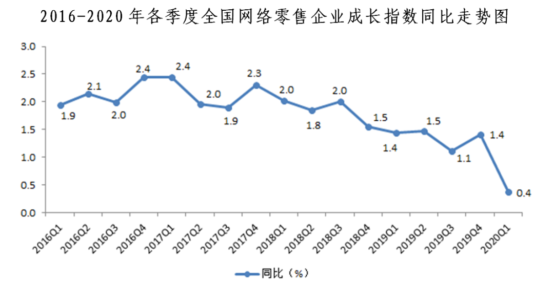 一、網(wǎng)絡(luò)零售企業(yè)成長(zhǎng)指數(shù)同比增長(zhǎng)0.4%,環(huán)比下降1.8%。