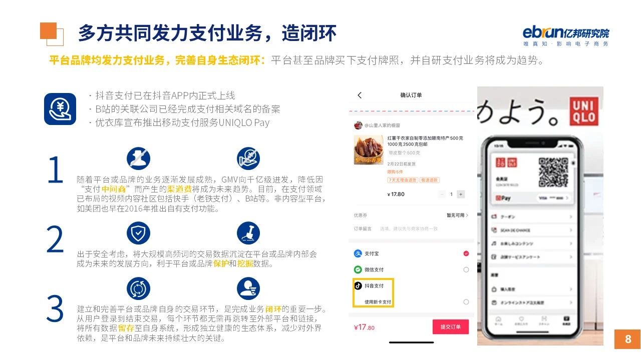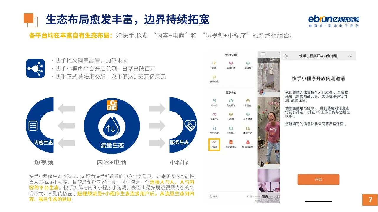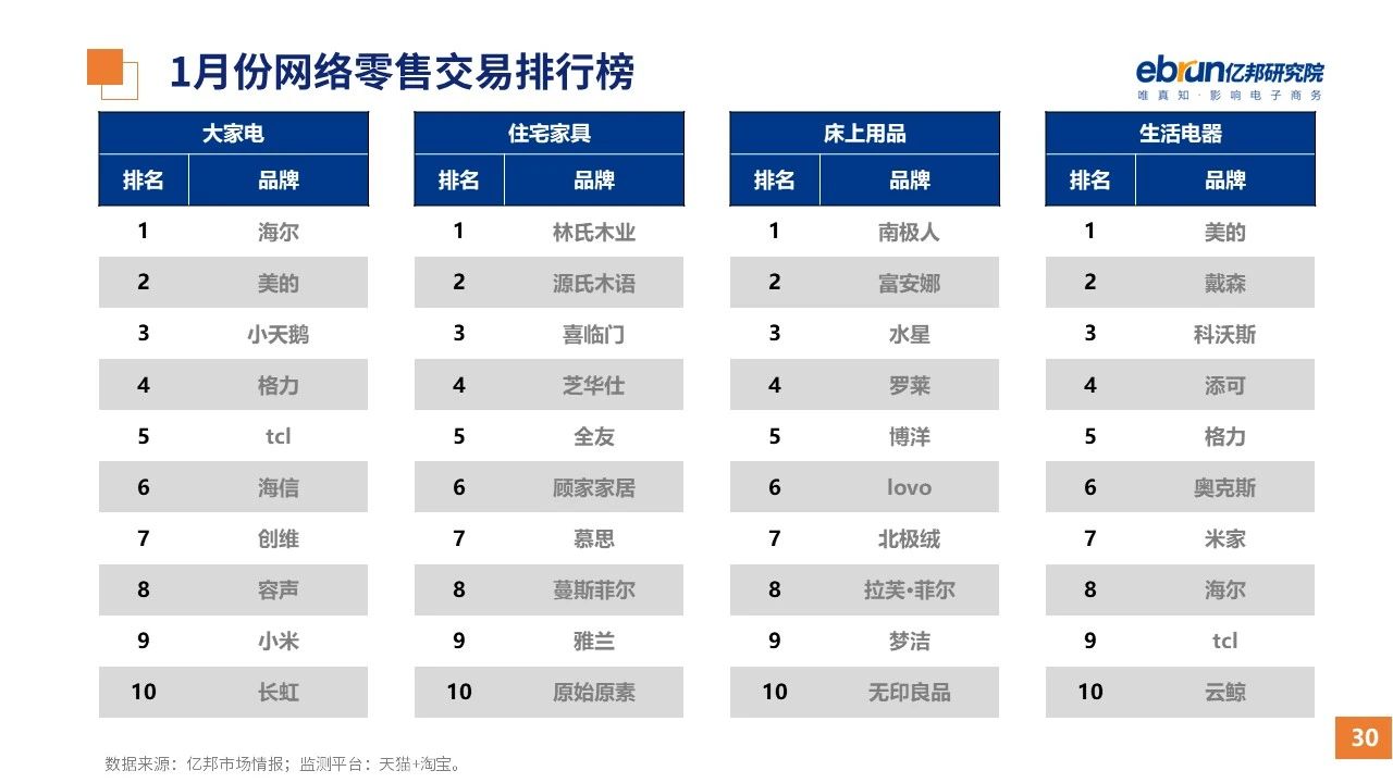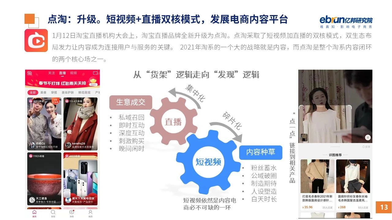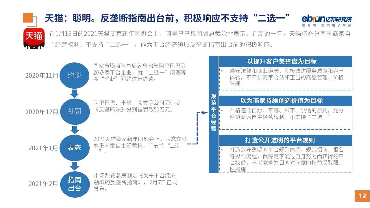 縱觀2021年1月,各平臺豐富自有生態(tài)布局,如淘寶直播(點淘)加入短視頻模式、騰訊重押視頻號、快手加碼電商和小程序、抖音推出支付等;視頻內(nèi)容成為各平臺未來重點發(fā)力方向;“九不得”新規(guī)發(fā)布后社區(qū)團(tuán)購仍熱情不減;國家和市場對互聯(lián)網(wǎng)巨頭和電商相關(guān)消費加大監(jiān)管力度……你信和不信,你知道和不知道的,都在這份億邦動力研究院正式發(fā)布的