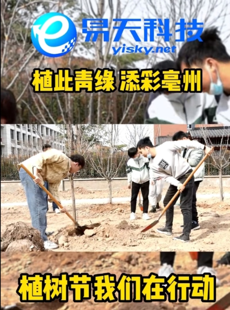 隨著春天的到來,植樹節(jié)如期而至。在這個充滿生機的季節(jié)里,亳州易天科技公司參與植樹活動,為改善生態(tài)環(huán)境、建設(shè)美好家園貢獻(xiàn)了一份力量。